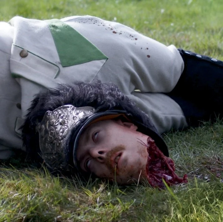 For Ridley Scott’s Napoleon (director’s cut) I was asked by Charley Henley to orchestrate two shots for the Marengo charge sequence in which Napoleon, played by Joaquin Pheonix, chops off some poor soldier’s head. The job involved creating a silicone replica of actor Joss Carter and puppeteering it so it looked appropriately ghoulish. We quickly worked out that the sequence was Ridley’s homage to 2001’s bone sequence, or at least had the same rhythm. The two shots had to match previously filmed reference footage in lighting and style, and had to have some weight and poetry to them, which the original plates lacked. Given this, I was inspired by the opening titles to American Psycho. What I was after from the head was a sense of ignomy, as whenever I’ve seen pictures of real severed heads (something that are plentiful in the job of make-up fx artist) it always struck me how confused the people looked, like they were caught by the camera just having woken up. So the job was to try and capture that moment of dumb realisation. A sense that maybe the head had made the wrong decision in life. To achieve this I went to master boncesmith Waldo Mason.